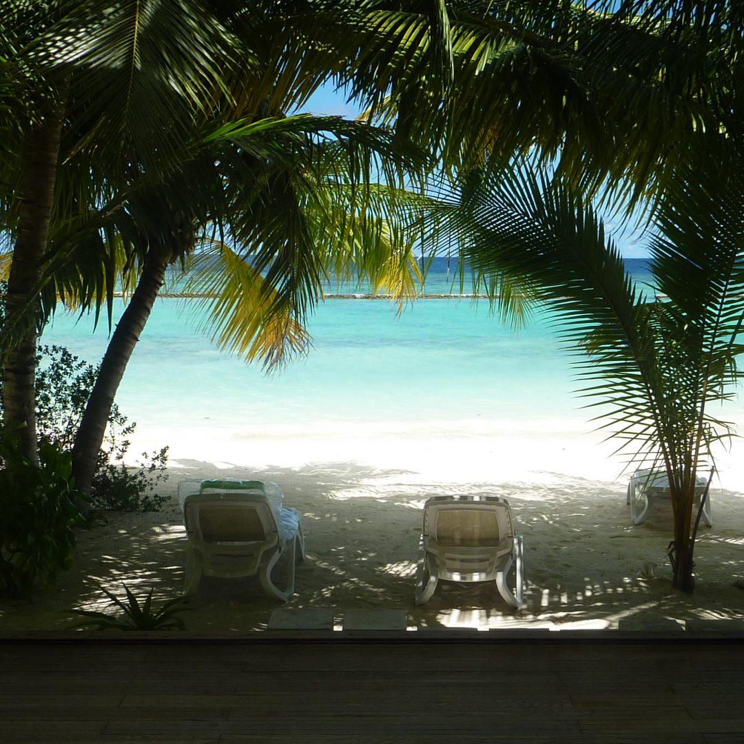 Premier réveil sur Kuramathi, c’est magnifique. Notre maison est sur le bord de la plage, l’eau est turquoise, il fait beau et chaud.