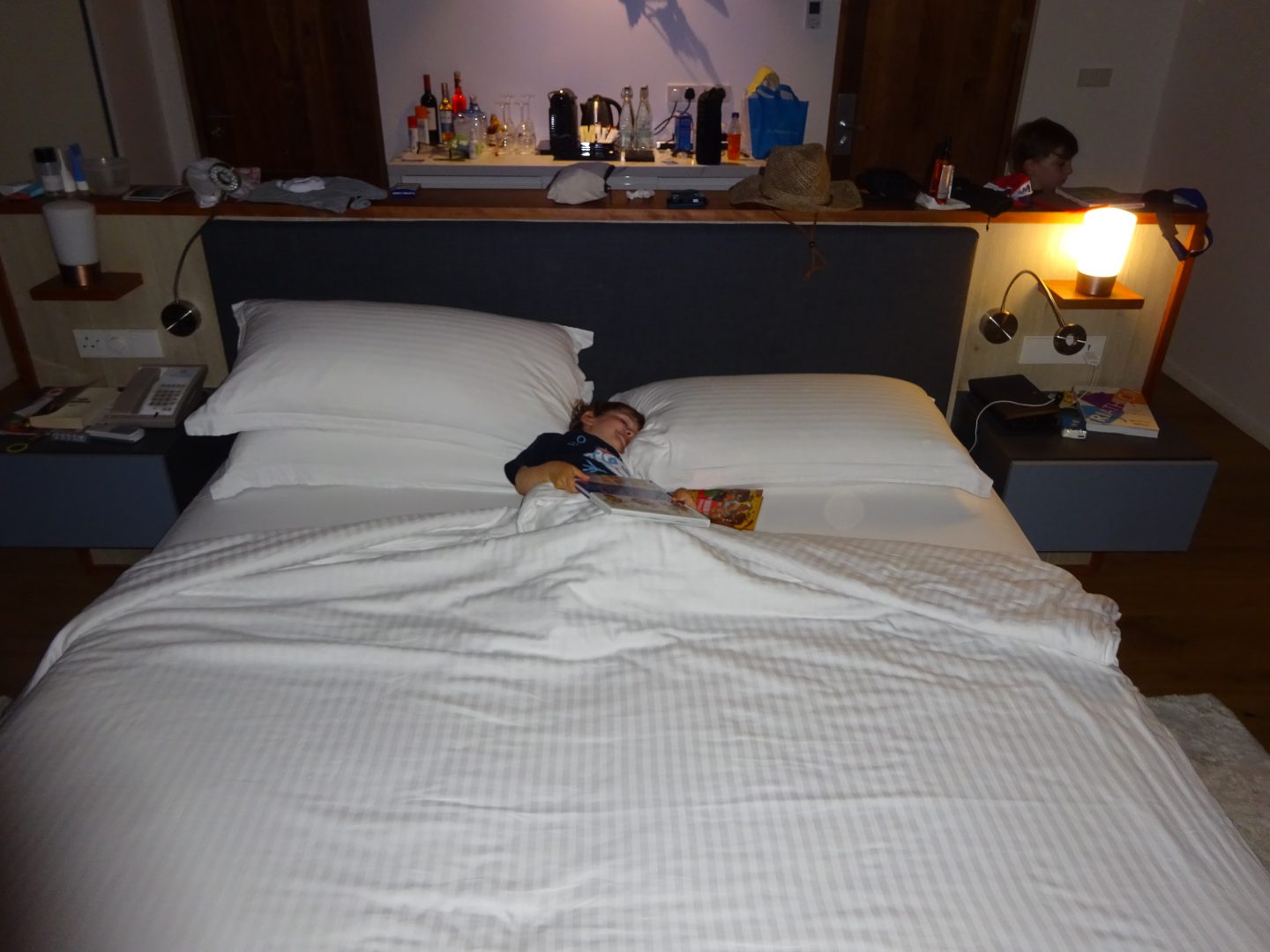 Cette maison était immense et très, très confortable. La douche à l’extérieur (pour chaque chambre), avec le temps chaud, c’était un vrai plaisir, Clément et Robin se sont régalés, les grands aussi !