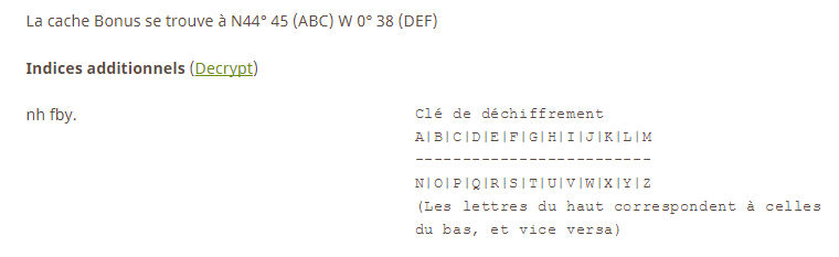 Pour le décryptage de l’indice additionnel « nh fby » à vous de chercher ! Nous on a trouvé !