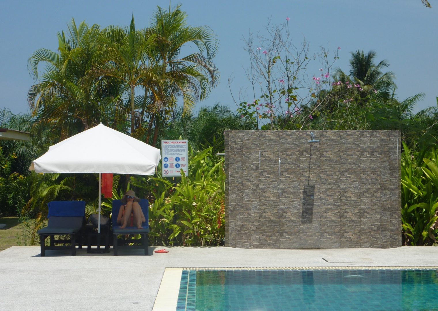 C’est le premier matin à Khao Lak (vendredi 2 mars 2018), ciel bleu et 34/35° exactement ce que l’on souhaitait. Comme on est arrivé tard hier soir (vers 22h00), on fait le check-in ce matin + location de scooter et rapidement quelques courses avec Louis (papayes, citrons verts, ananas et mangues pour midi et un peu d’eau) pendant que Marie-Anne et Évelyne vident les valises et rangent la chambre. Puis un petit tour à la piscine …