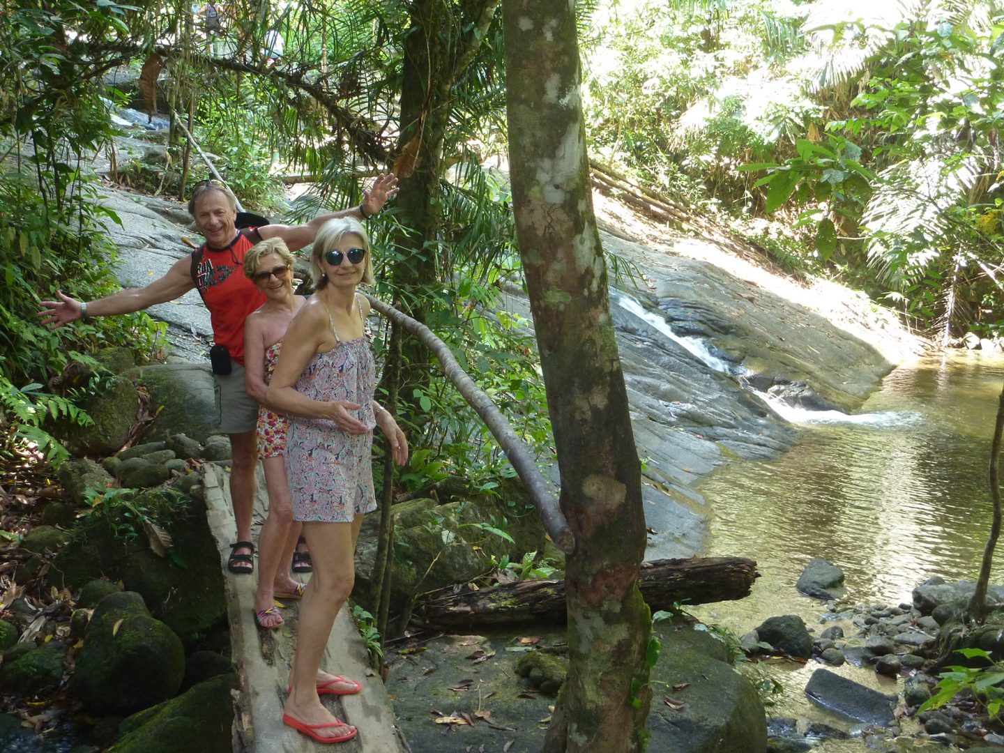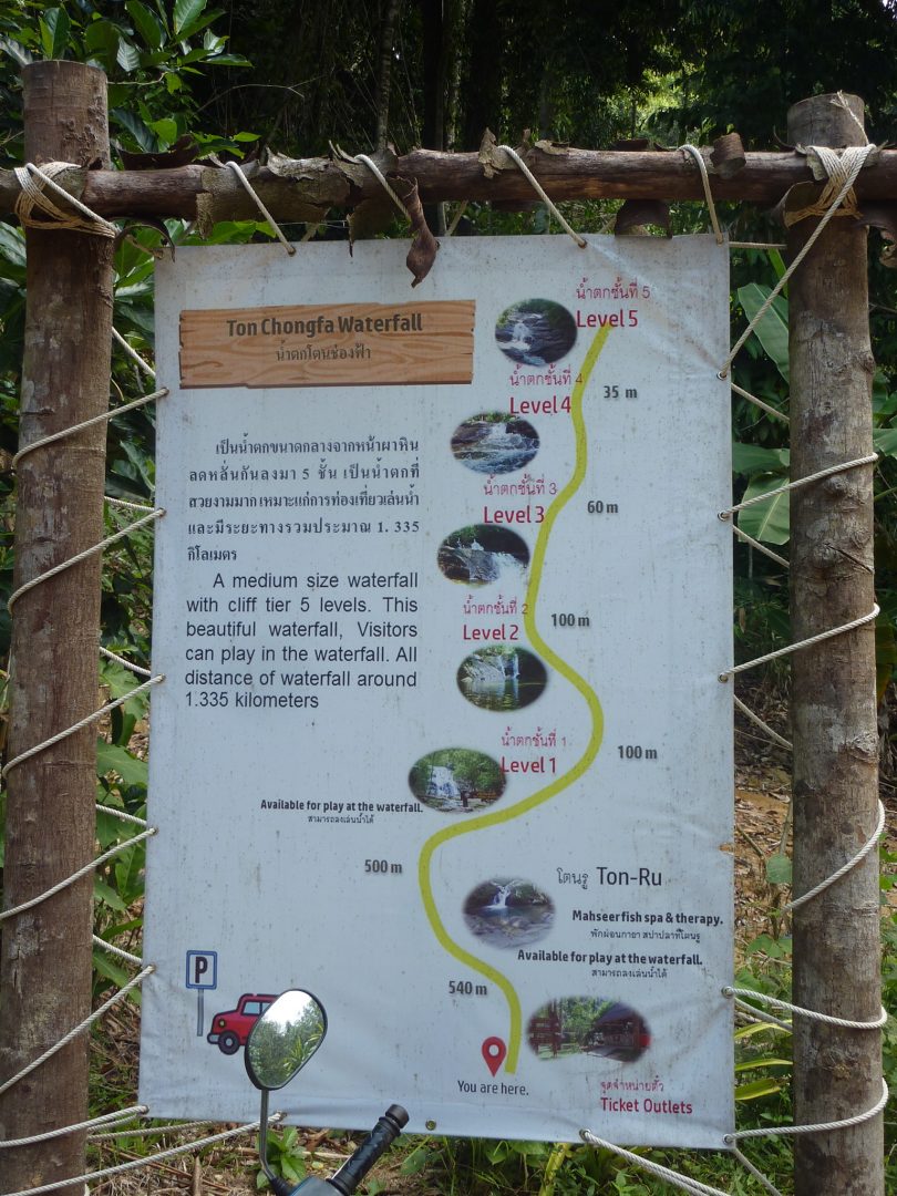 La balade à pieds fait environ 1km jusqu’à la base de la cascade, mais ensuite il y a plusieurs niveaux pour aller jusqu’au point haut. Nous n’arriverons pas en haut car des éboulements ont entraîné la fermeture du chemin, très peu praticable par ailleurs. Marie-Anne a stoppé au niveau 1 et Évelyne au niveau 2, elle ont eu raison car c’était quasiment de l’escalade par moment pour poursuivre plus loin. Avec Louis, on est allés jusqu’au niveau 4.