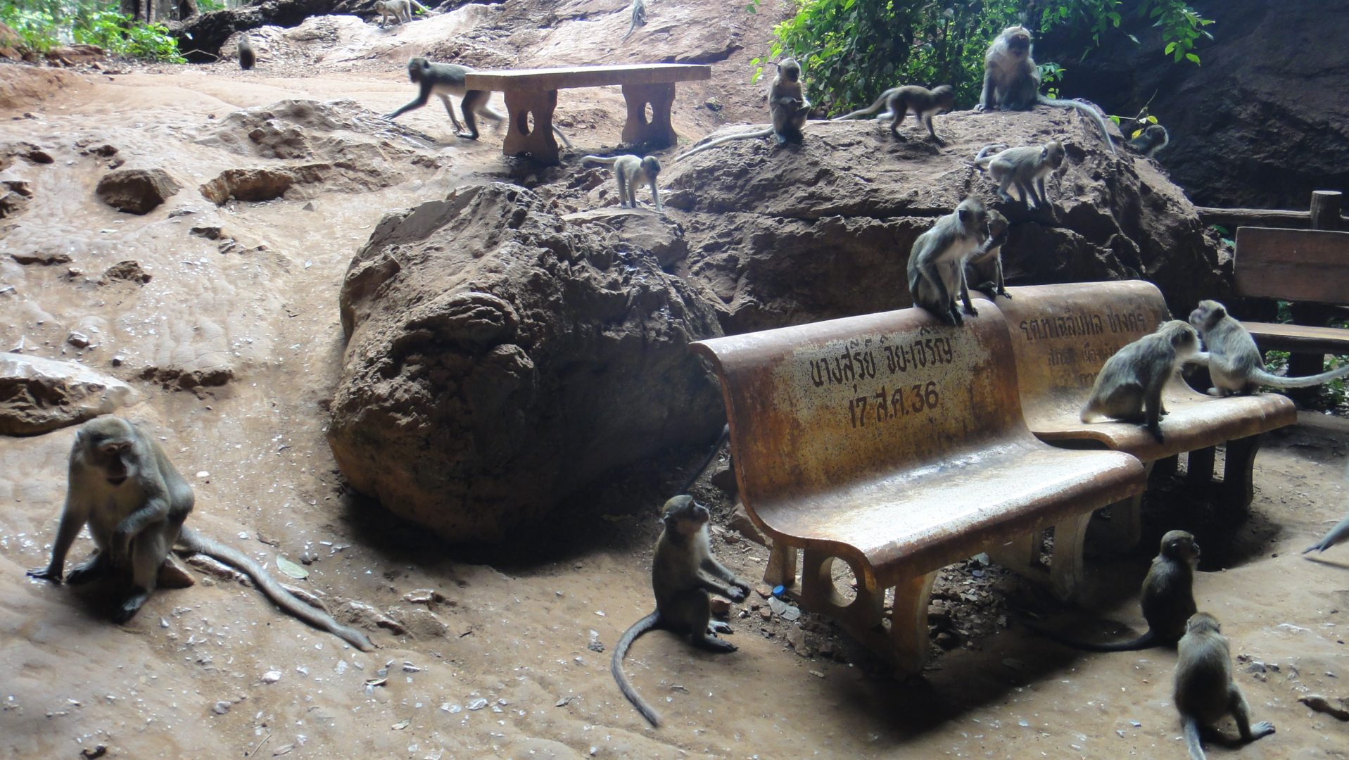 Au retour de notre excursion à James Bond Island (samedi 10 mars 2018), nous avons visité un temple avec une grotte et plein de macaques à longue queue.