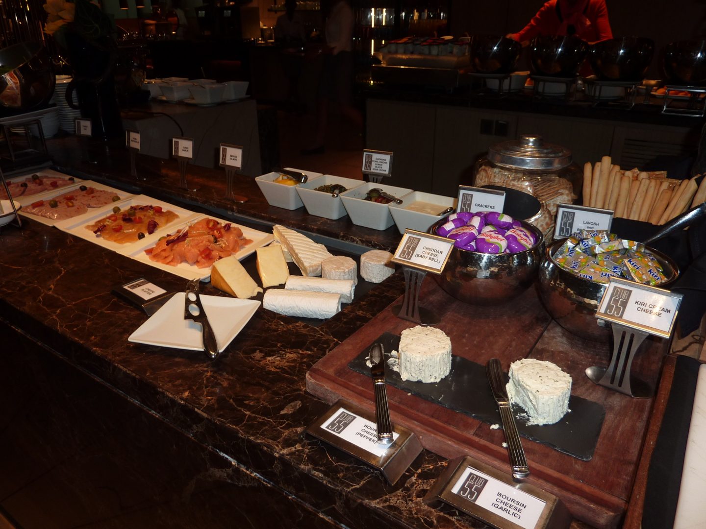 17h00 Champagne à volonté et petits fours/tapas/fromages/… vraiment délicieux (photos du buffet dans l’article Marina Bay Sands en mode surclassé)