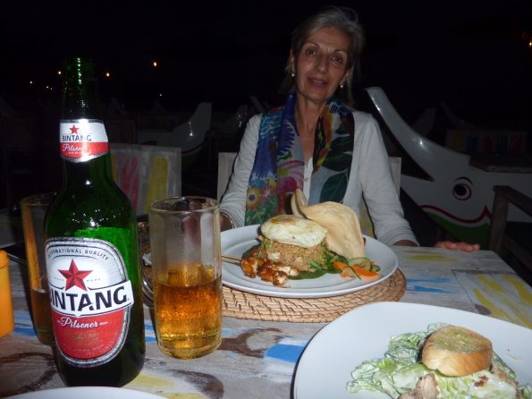 Une Pina Colada, un Nasi Goreng (riz frit) et une Bintang.