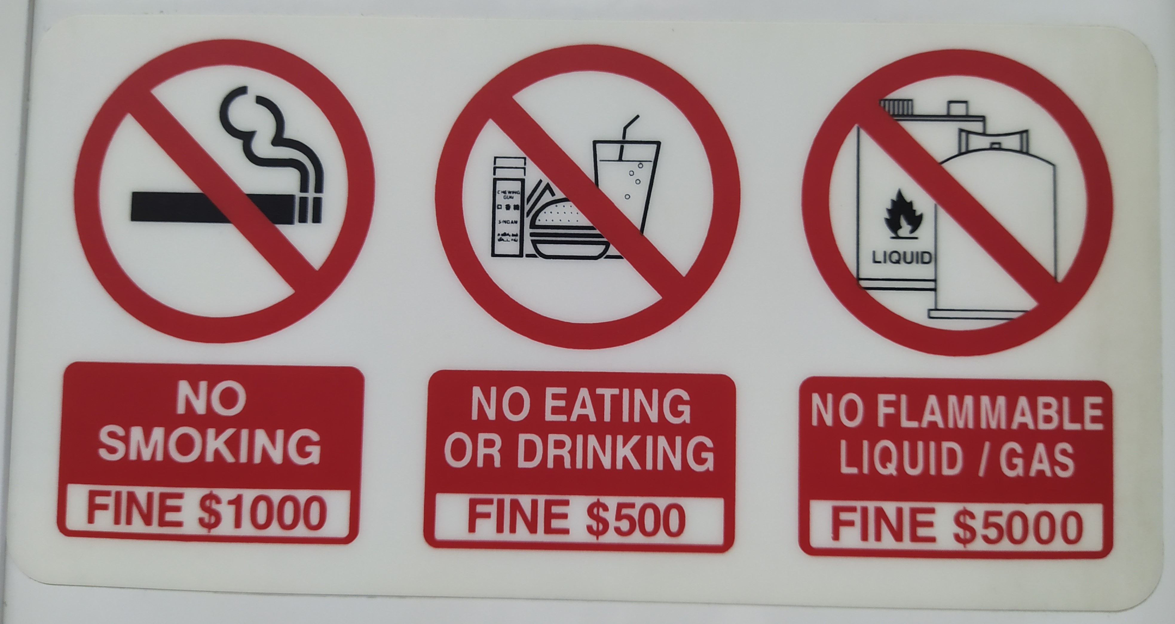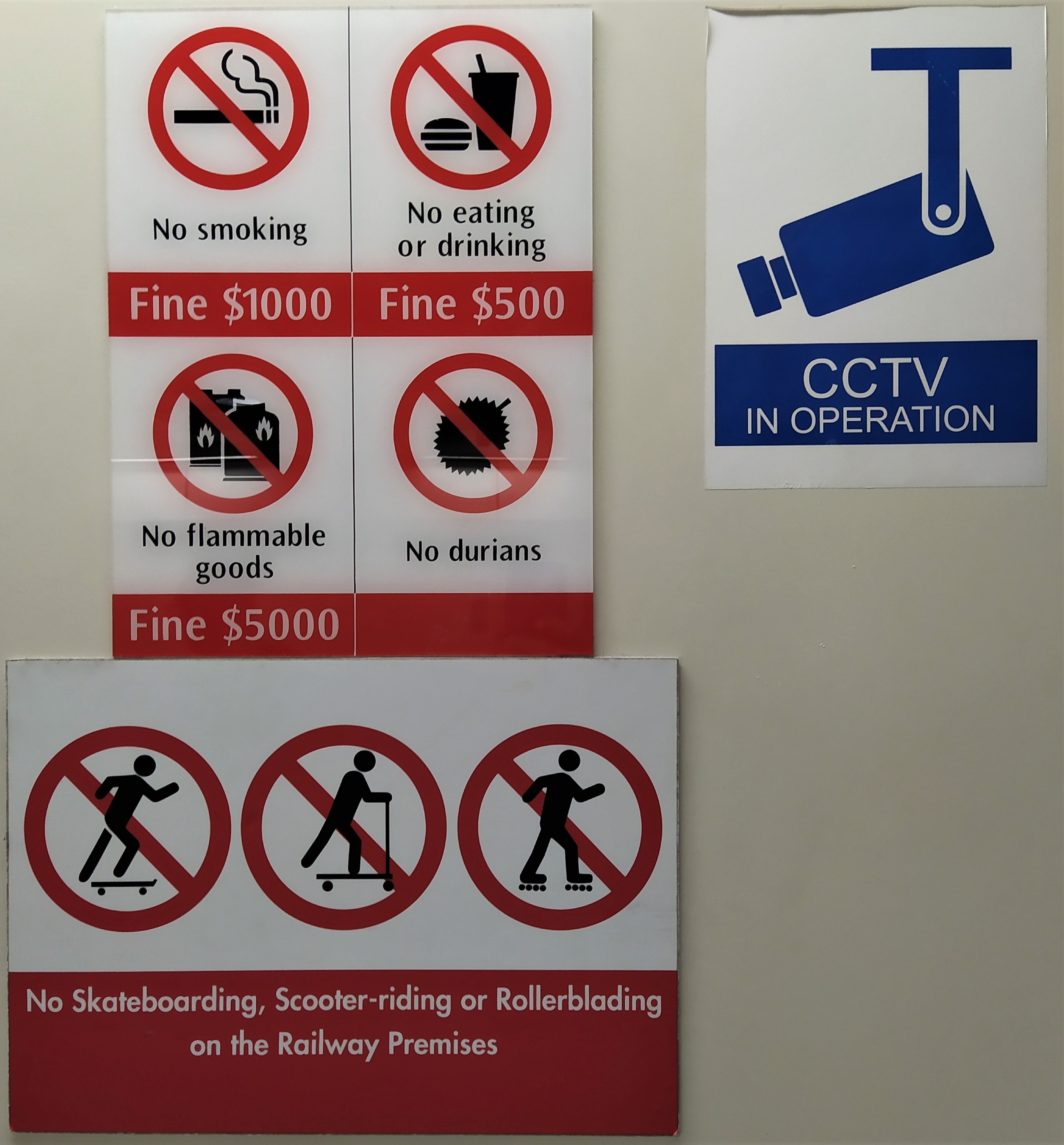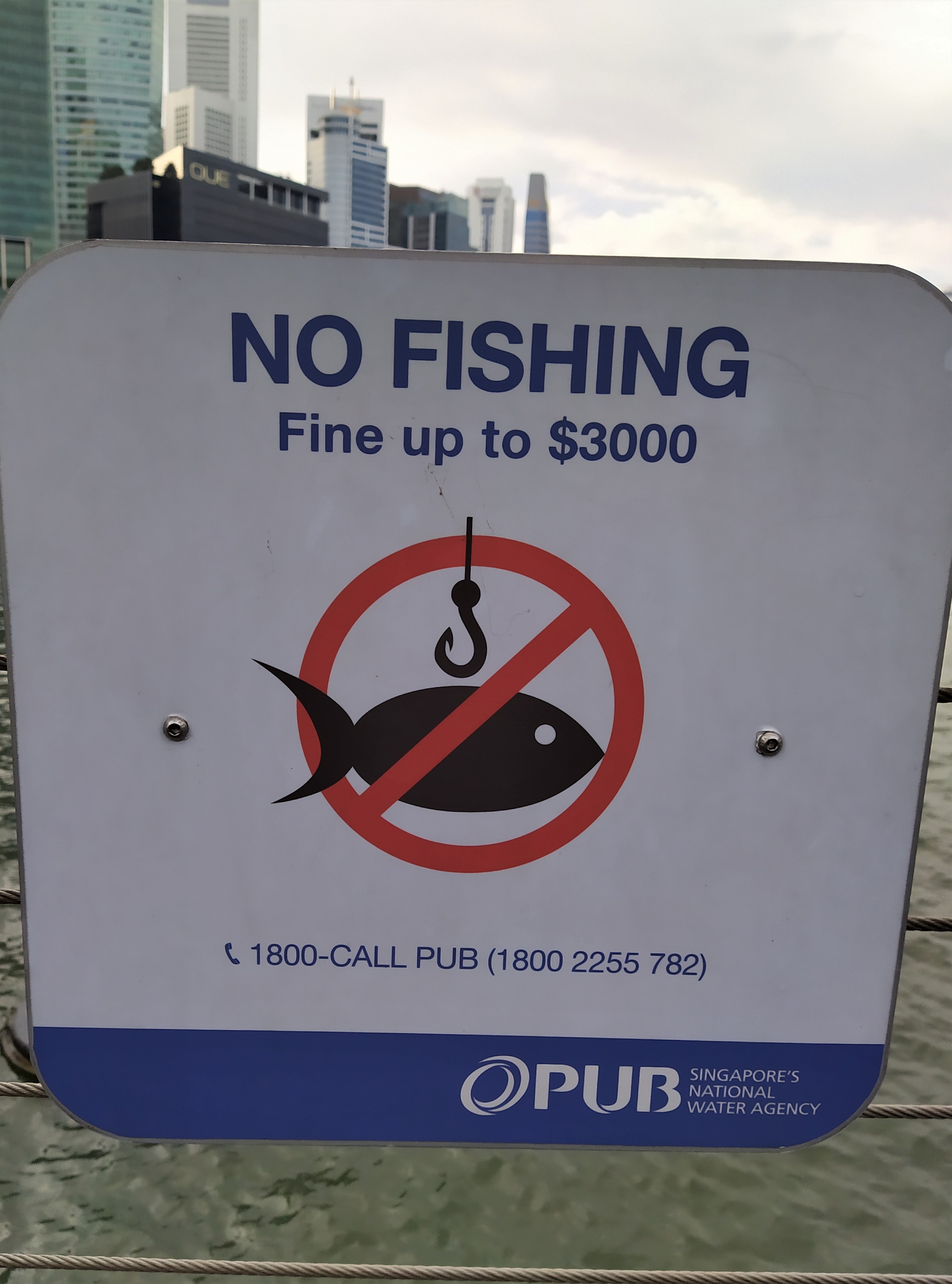 A Singapour, on voit très souvent des panneaux avec des recommandations, des interdictions et parfois le montant des amendes associées. Mathieu a photographié tous les panneaux croisés au cours de nos promenades. Il en manque certainement mais cela donne déjà une bonne idée de l’état d’esprit à Singapour. C’est propre et organisé, partout et dans tous les domaines.