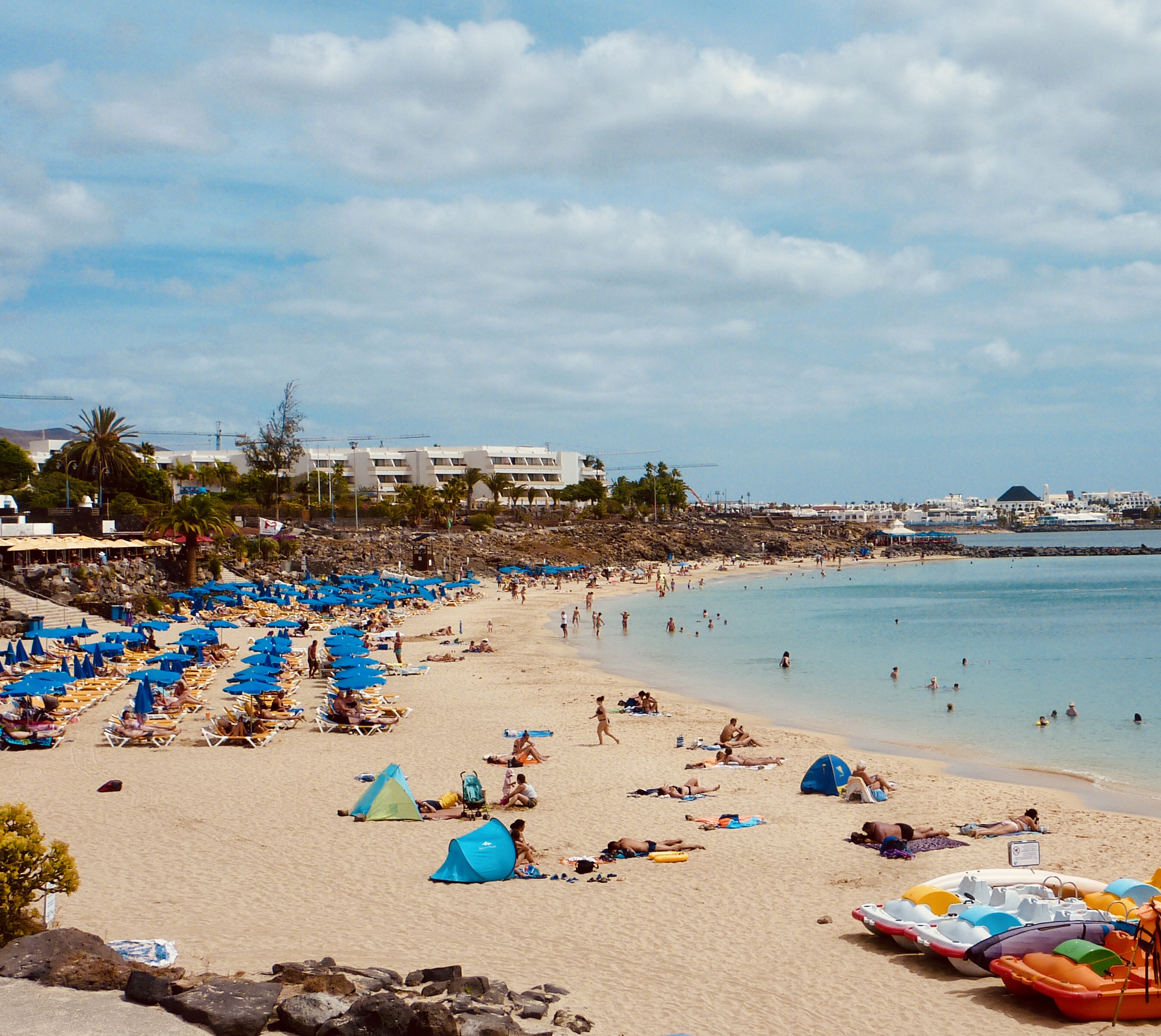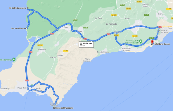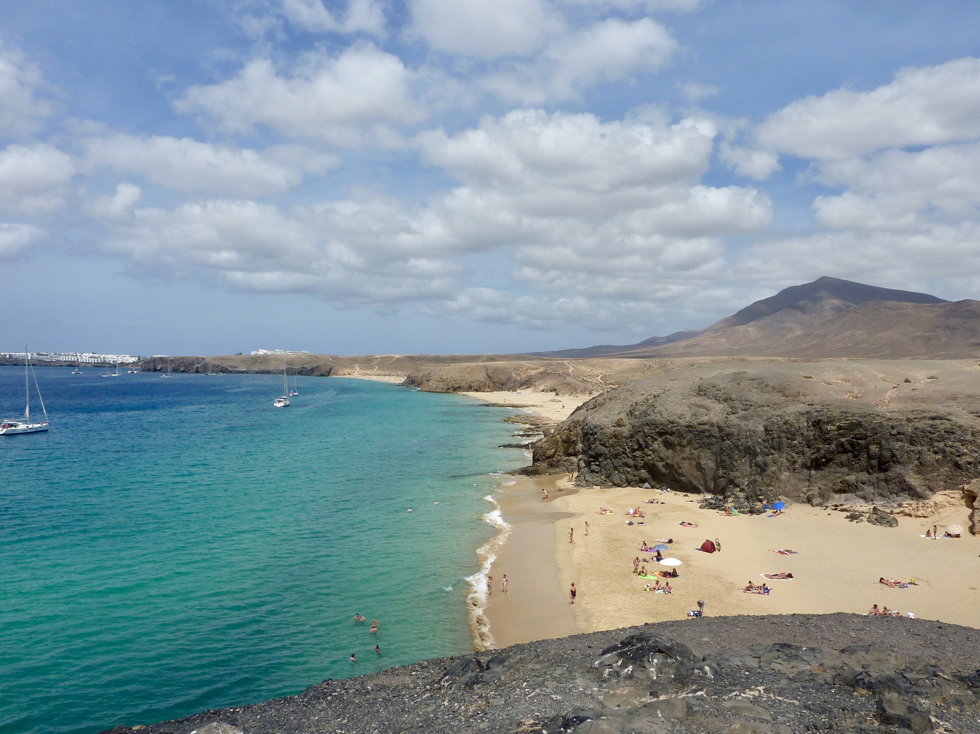 Puis, nous reprenons la route direction la Punta de Papagayo, toujours un revêtement dans un état exceptionnel jusqu’à Playa Blanca, puis une piste poussiéreuse et chaotique pendant 8km (très longs ces km !). On arrive aux plus belles plages de l’île, très différentes de celle de Puerto del Carmen où se trouve notre hôtel. Une petite visite de Playa Blanca et retour au Lava Beach pour finir la journée sur le bord de la piscine.