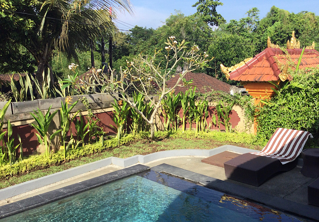 Après un voyage un peu long pour cause de contrôles multiples, nous voici enfin arrivés dans la villa d’Ubud avec un accueil chaleureux de Wayan, Putu et Desi. Un rafraîchissement très apprécié nous est proposé , une petite discussion à prolonger demain, une visite rapide de la villa et au lit avec la clim. Il est presque minuit et il fait chaud 🥵.