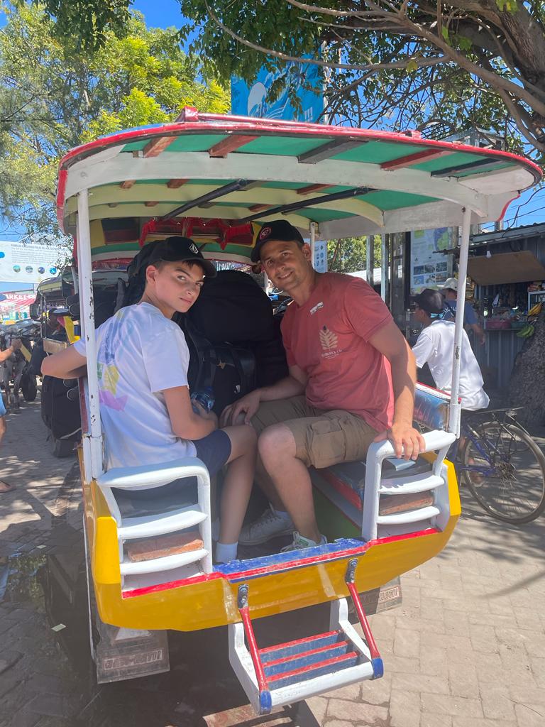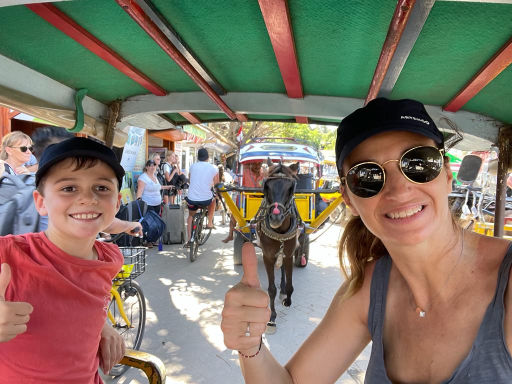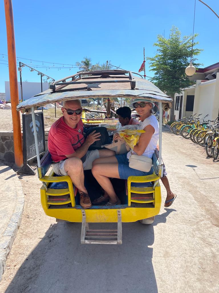 Arrivée à Trawangan plutôt que prévu et dépaysement complet avec le trajet en Cidomo vers l’hôtel.