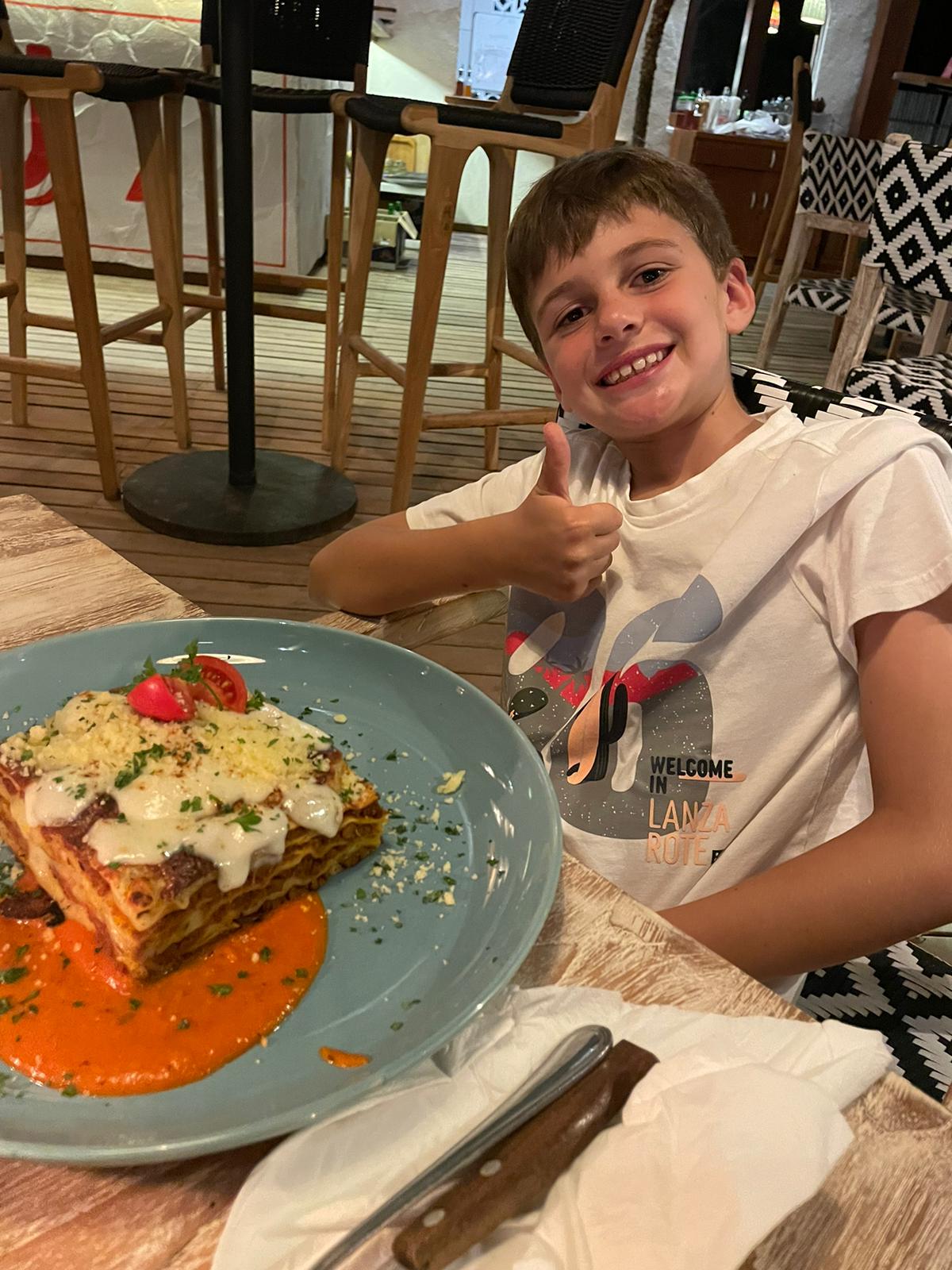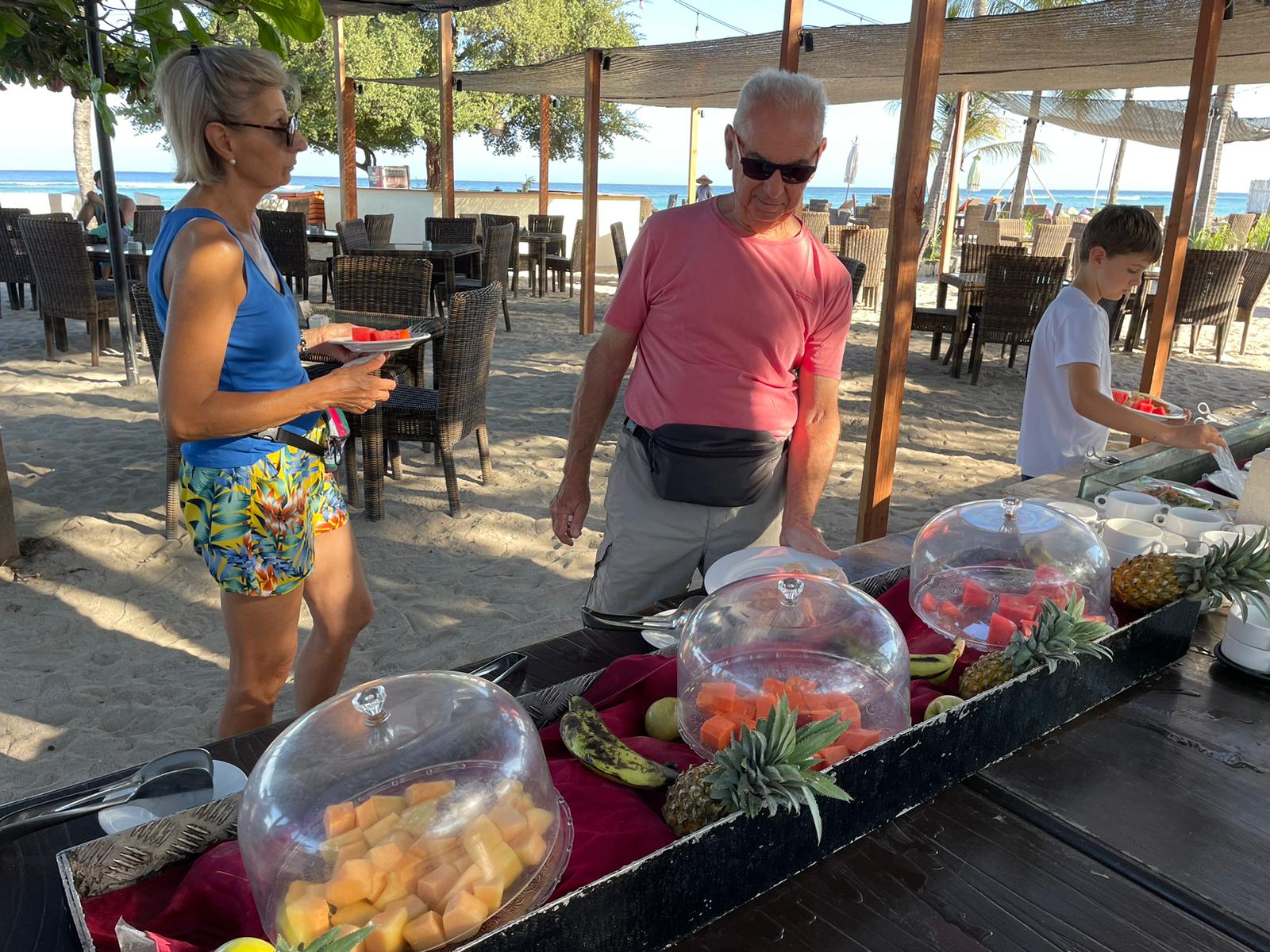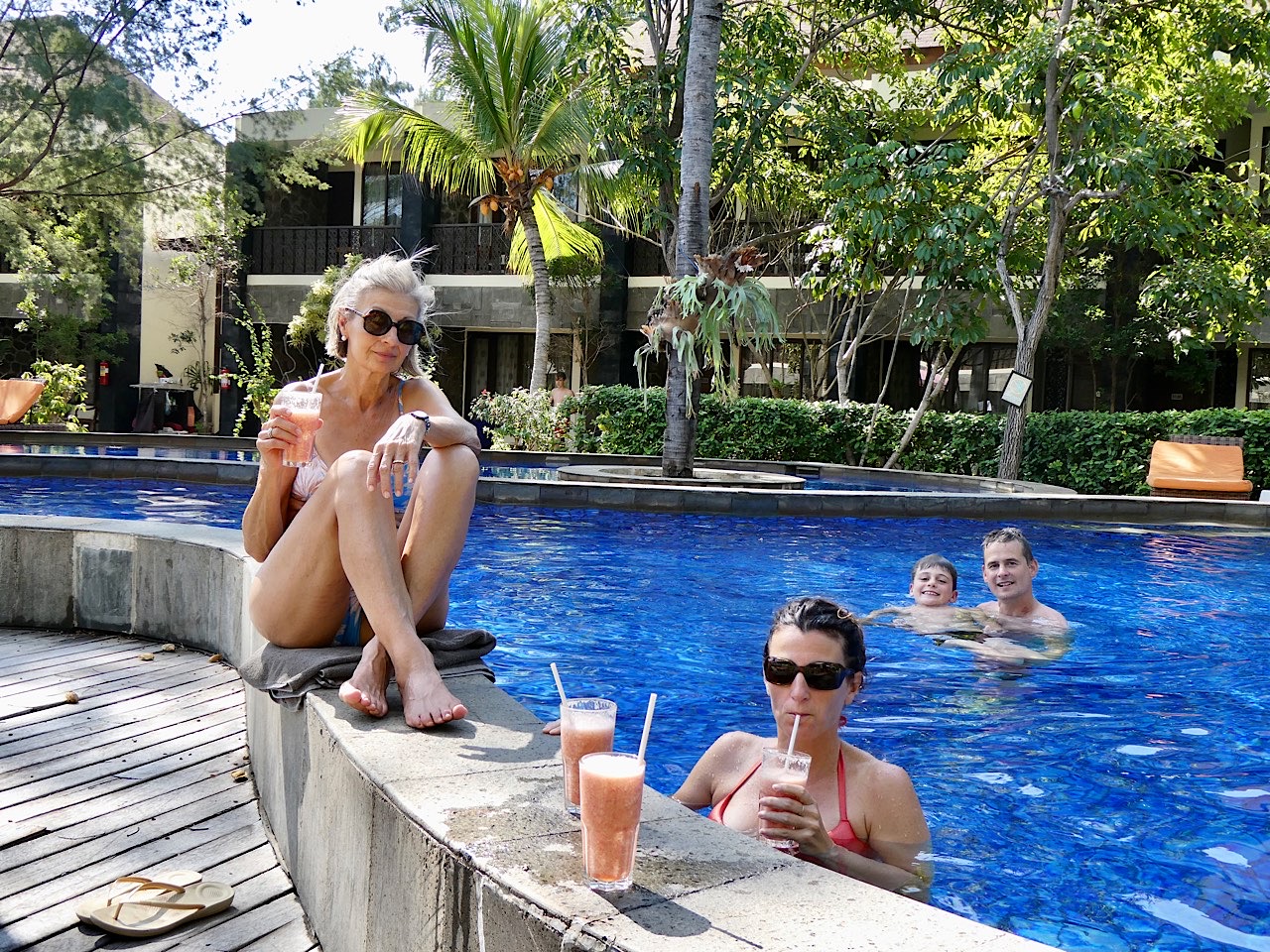 Retour vers la piscine vers 13h?? (on ne sait pas !), un jus de fruit et quelques samosas pour Caro.