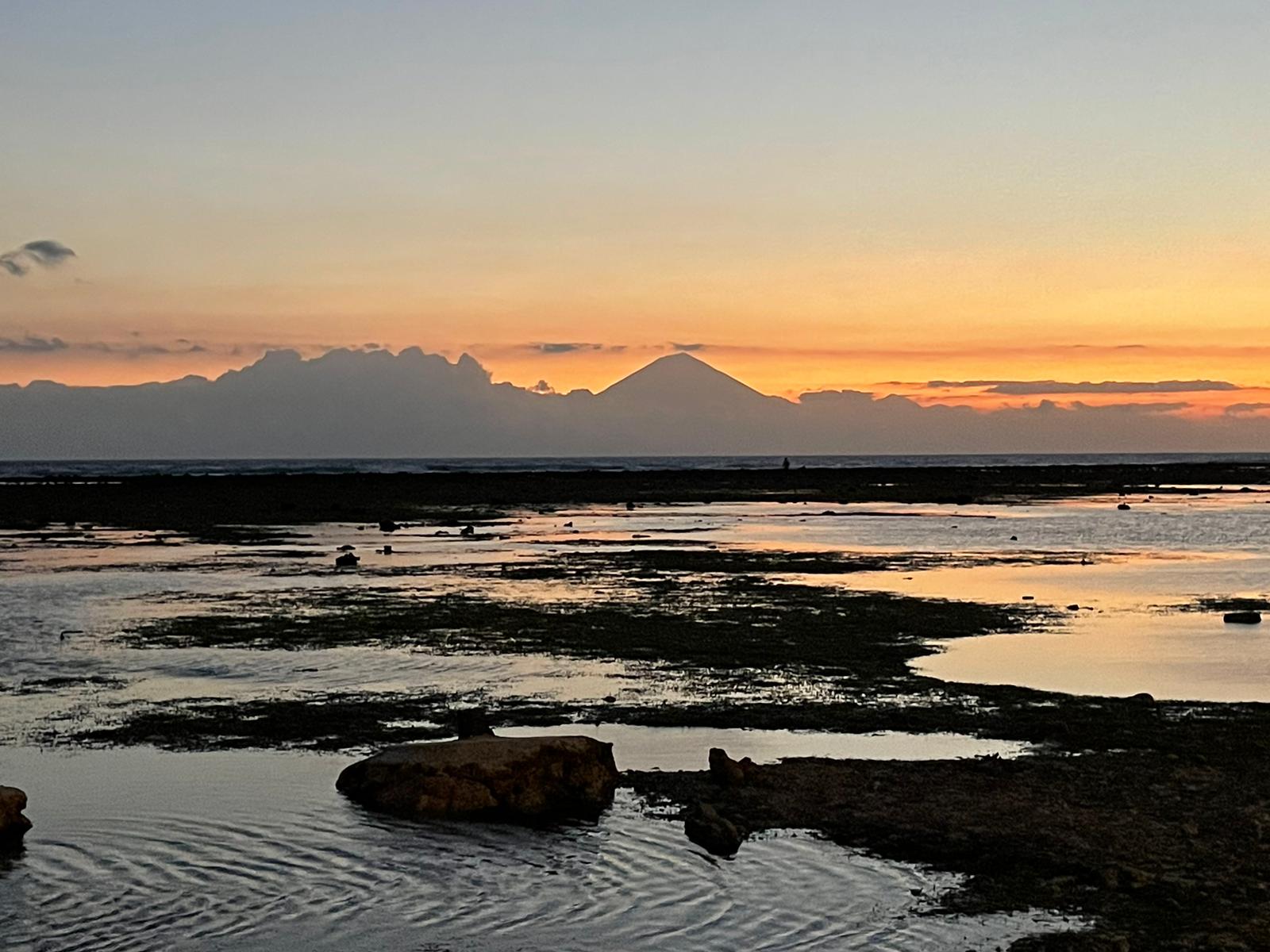 Photo de coucher de soleil de Caro ce soir avec un volcan de Bali en arrière plan - pas mal du tout