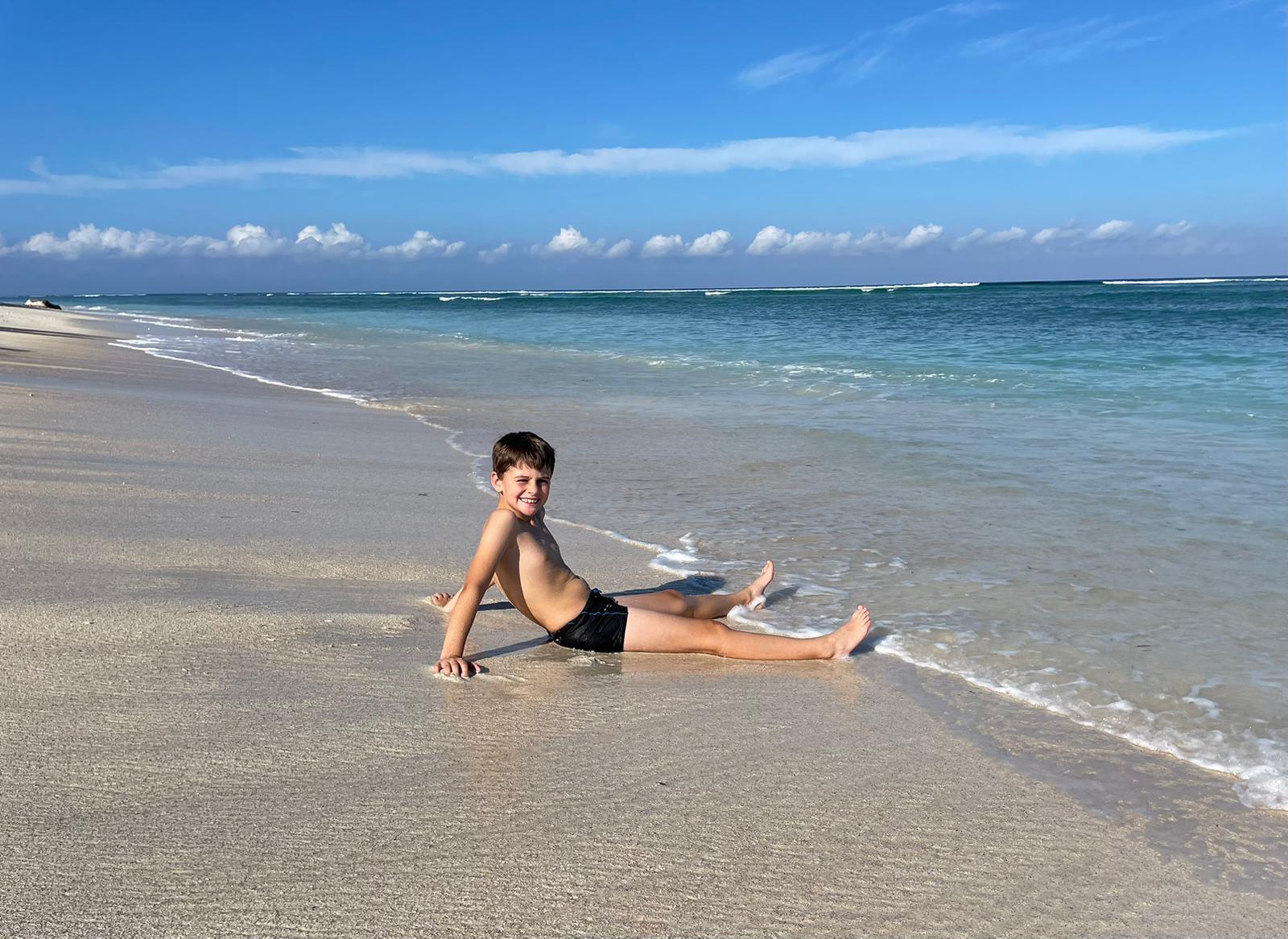 Balades sur la plage, recherche de coquillages, partie de Frisbee, baignades, jeux avec camions/avions/engins de chantier dans le sable pour Robin, bronzage et on recommence …