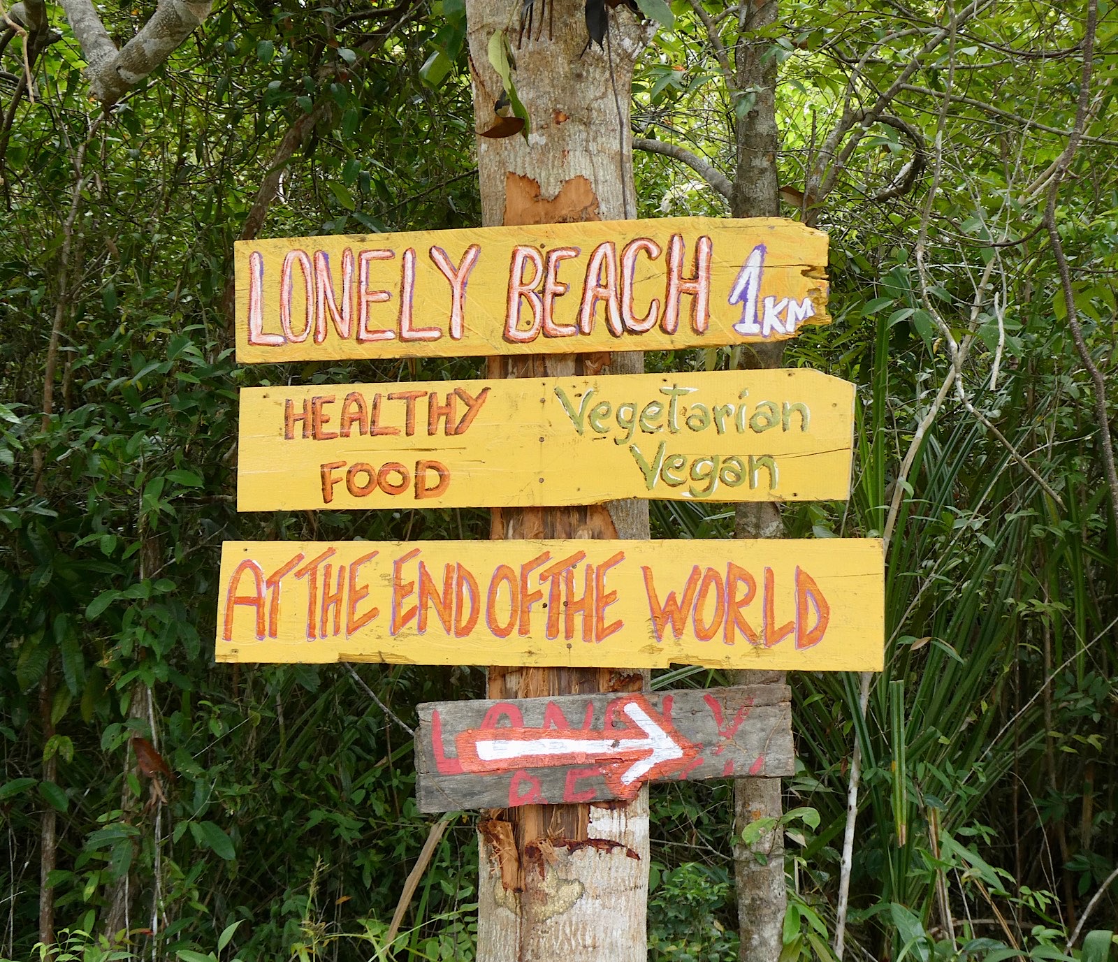 On est allé sur la plage de Lonely Beach, au nord de l’île. C’est vraiment perdu, on se sent un peu comme Robinson Crusoé. Comme vous le verrez dans les légendes des photos, 1,5 km dans la végétation assez étouffante et avec plus de 32°.