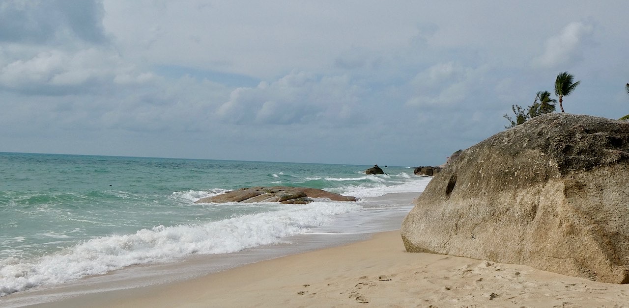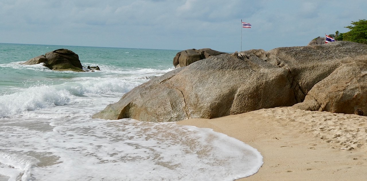 Découverte de notre nouvelle plage Lamai Beach plus au sud. La plage est plus grande mais similaire car l’orientation est la même. La partie sud est plus jolie avec des rochers de granit un peu comme aux Seychelles.