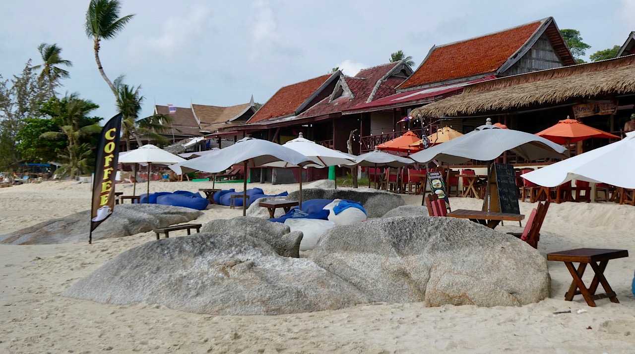 La différence est essentiellement l’environnement car nous sommes à 300m du Night Market de Lamai et à 60m de la rue commerçante. Il y a une multitude de boutiques (massages, bars, restaurants, 7/11, souvenirs, banques/change/distributeurs de billets, bijoux, vêtements, coiffeurs/barbiers, salles de boxe Thaï, boulangeries, pharmacies, laundry,