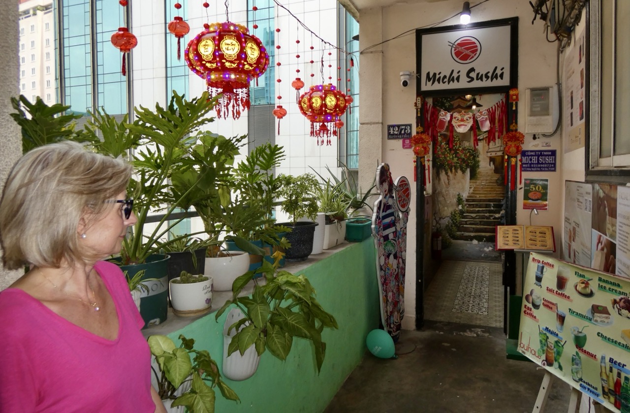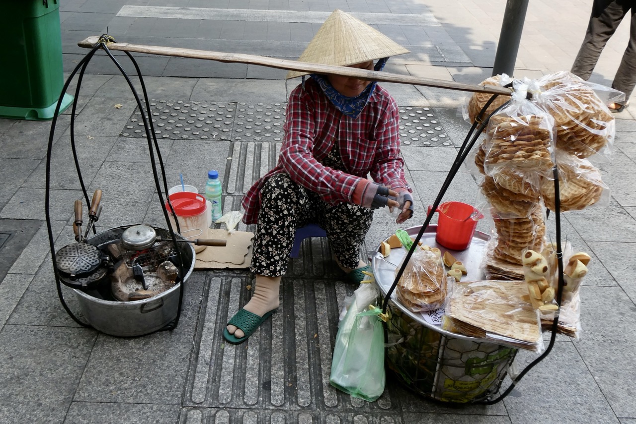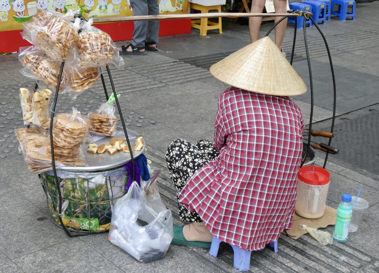 Sur la gauche, on voit son matériel de cuisson et ses moules à beignets. C’est à 100m de notre hôtel.