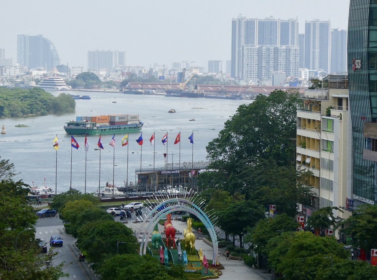 Un petit porte containers sur la rivière Saïgon (vu depuis l’Appartement Café)