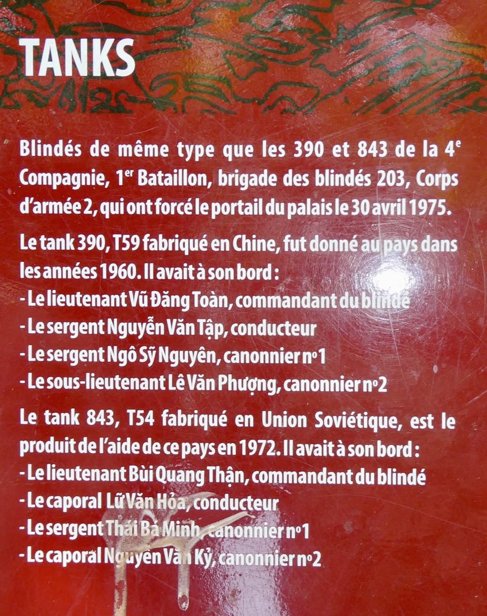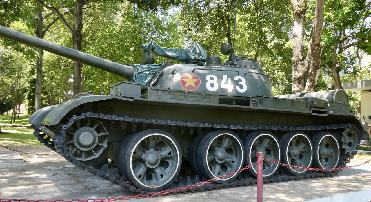 Un des chars qui pénétra dans l’enceinte du palais présidentiel le 30 avril 1975